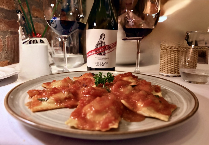 molho ao sugo, criando uma harmonia por semelhança. Para preparações mais delicadas, como um molho caprese — que combina tomate, manjericão e mozzarella — vinhos mais leves e frescos podem funcionar melhor, como é o caso do Montepulciano d’Abruzzo. Já pratos mais intensos, como o molho à puttanesca, que leva anchovas, alcaparras e azeitonas, pedem vinhos com maior estrutura e caráter, como os produzidos a partir da Aglianico, capazes de acompanhar a potência dos sabores sem perder elegância; valendo citar que os brancos da casta Vermentino e da uva siciliana Grillom também desempenham um bom papel na harmonização com os tomates.